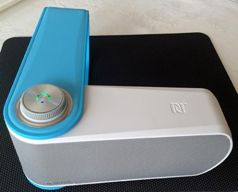 「Xperia A SO-04E」で音楽を再生しながら、GiGの上部のNFCのセンサー部分に近づけて接続しました。