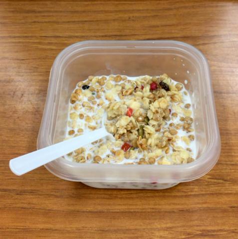 フルーツは、いちご、りんご、パパイヤ、レーズン、かぼちゃの種などが入っています。