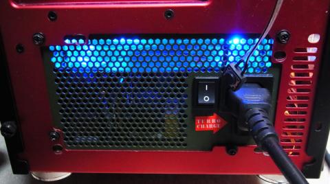 実は通常の青モードでも14cmファンの回転数はそこそこあり手持ちの電源と比べると音は大きめ。まあ私自身500Wクラスの静音電源しか自分で使った事がないのでこのクラスだと普通なのかもしれないが。その分排気能力は高いので電源ユニットの排気が影響の大きいケースの場合一種の武器になる。