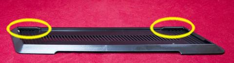 そして本体を乗せるだけではなく、ピッタリとハメるようになっており黄色で丸を付けたところ 2箇所にゴムの滑り止めが付いており、ハメた後に本体を持ち上げるとしっかりスタンドも付いてきます。