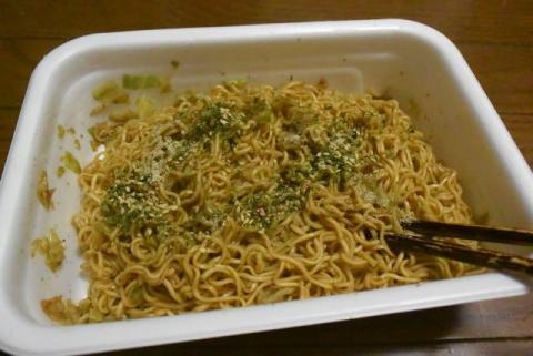 ペヤングのソースは薄口なので、スパイスとふりかけが映えますね。