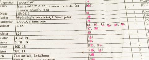 このパーツリストを眺めながら一致するところに一致するものを半田付けしていくだけ。