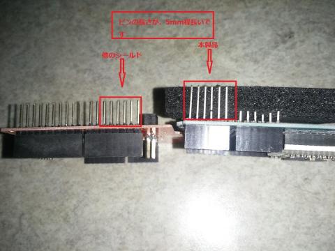 1. 他のシールドと比較して、ピンの長さが長いです。