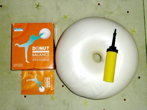 ドーナツバランスボール本体に空気入れと、エクササイズシートが入っています。