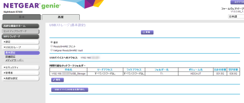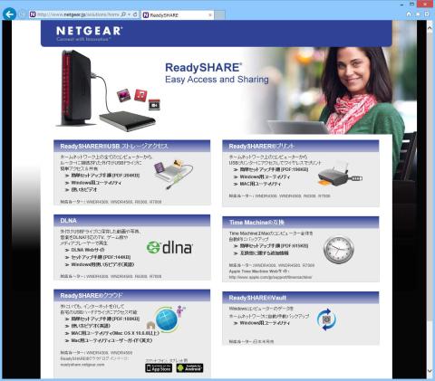 デスクトップ版設定アプリ(NETGEAR Genie)ではReadySHAREには非対応と表示される。