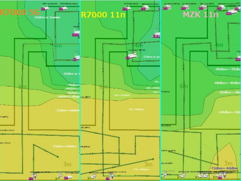R7000がリビング窓際で数db planex MZKより下がる結果になっています