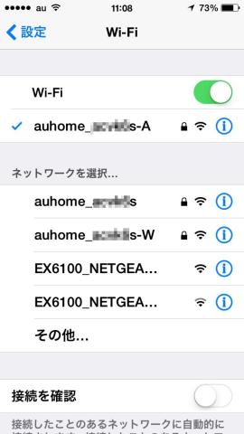 もともとあった親機のSSID(auhome_xxxx)とEX6100のSSID(2GEXT,5GEXT)がごちゃごちゃに並んでいますが、要するに、親機の信号もEX6100の信号も大差は無いと言う事です。