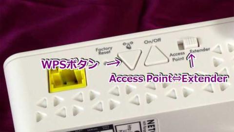 設定は、すでにExtenderとしてのセッティングは出来ているので、「Access Point⇔Extender」の切り替えSwをACP側に切り替え、LANケーブルを繋げば他には何もしないで使えます。