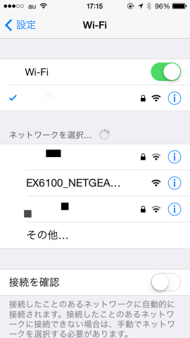 この状態でiPhoneからは接続したSSIDに