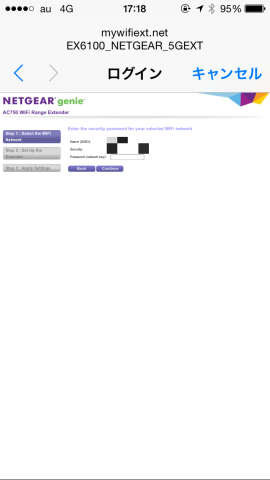 Wi-Fiの設定画面から、EX6100_NETGEARとSSIDが見えるのでそれに接続してみます。