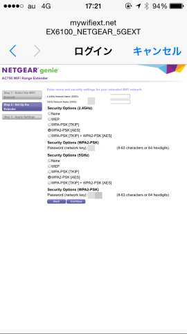 EX6100 2.4GHzへ接続してみます。