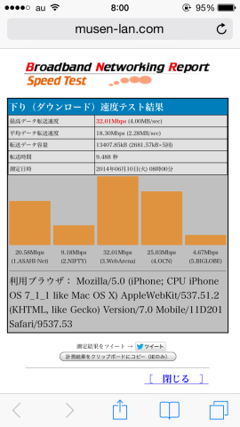 もともとこの周囲は電波の入りが悪いのが、遅いと感じられます。