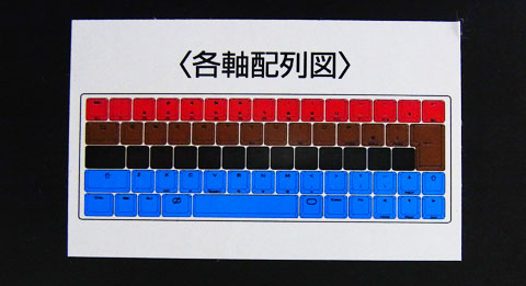 一番力が入りやすいであろう中段に黒軸が位置しているのと、4種の中で一番タッチや音が浮いている青軸が下2段なのでローマ字入力の場合頻度が少ないのも違和感を少なくしている要因か。むしろタッチよりも青軸の音に違和感が出るのだが、1日使ったら慣れた。