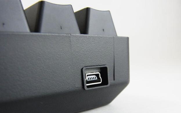 背面の接続ケーブルは直付けではなくMiniUSBタイプ。付属品だけでなく汎用ケーブルとの交換も可能。但しコネクタ部が筺体内側にあるとかそういうのはないので、ケーブル側コネクタ部をぶつけそうでちょっとこわい。またケーブルを出す方向を選ぶギミックもなし。
