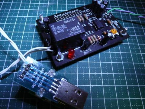 aitendoさんのUSBブレークスルー基盤を二基使い、その間にこの時限タイマーを入れてやることに。