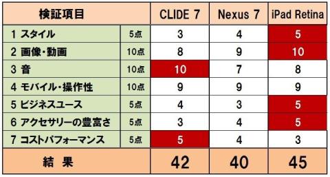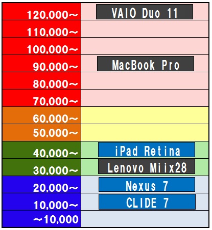 ●2014/05/25 追記 「CLIDE 7」とその他のタブレットとの比較