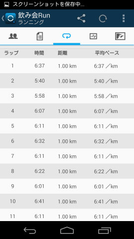 そしてラップタイムもきちんと取ることができます。自転車では5km、ランニングでは1kmに設定しています。