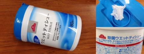 不織布使用、保湿剤、アルコール配合です。乾いたティッシュでは落ちない汚れを拭き取るのに使います。
