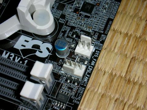 APUクーラー用(4pin)とケースファン用(3pin)が並んでいます。このマザーのファンコネクタはこの2基しかありません・・・