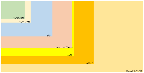 今,スマホやコンデジは,1/2.3型です.S95が一回り大きい1/1.7型ですが,大きな差はありません.高級コンデジの主流は1型で,急に大きくなります.そして,フォーサーズ,1.5型と続きます.APS-Cサイズの次に1.5型は大きいことがわかります.