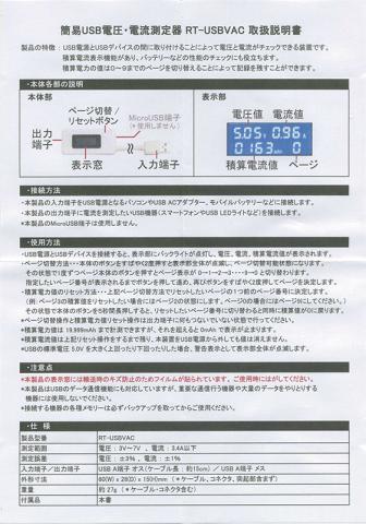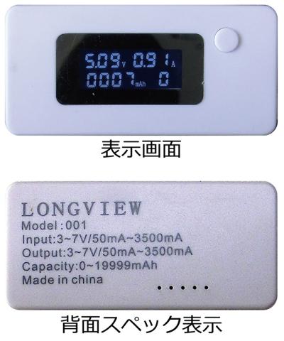 測定できるのは、電圧が3V~7V,電流が3.5A以下,積算電流値は最大19,999mAhです。