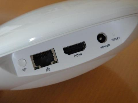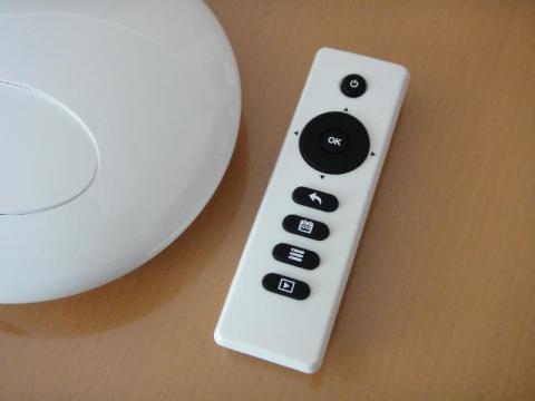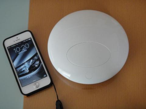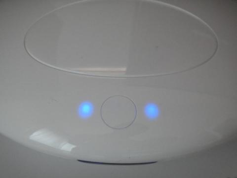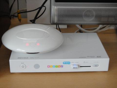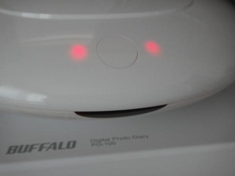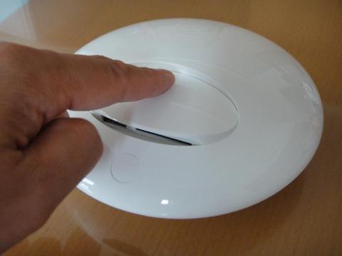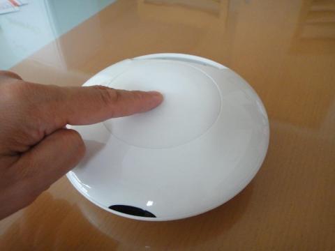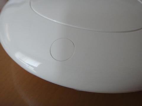無線LANに接続されていない時は赤いLEDがついています。受光部が口、LEDが顔、ボタンが鼻になってちょっと顔に見えますよね。狙ったデザインでしょうか。