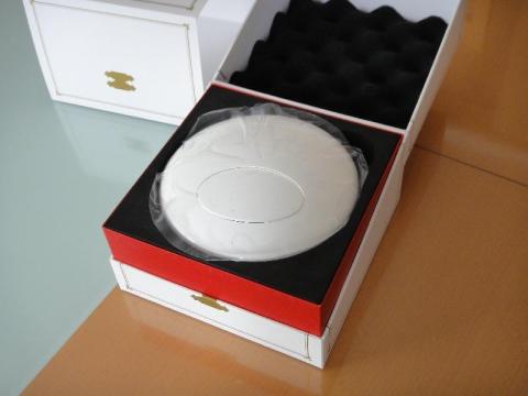 蓋をあければ丸い宝石のようなジュエリーボックスが現れます。傷防止の保護フィルムがあるのが残念ですが。
