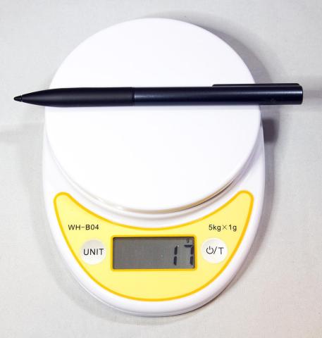 重さは電池を入れた状態で 17gあり、私は重めのモノが好みなので良いのですが、電池がヘッドの方にあるのでバランスが悪く、書きづらいです。
