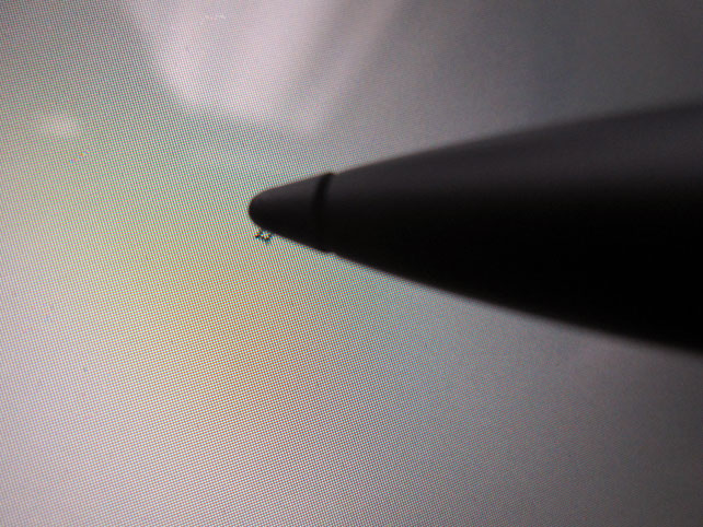 タブレットの画面にペン先を近づけると、ポインタが出て、接地点がわかるようになっています。