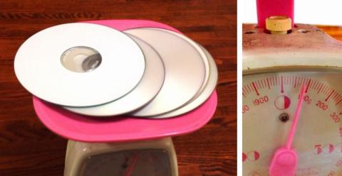 今回、秤が汚くて申し訳無いのですが、DISK5枚の重量を量ってみました。5枚で約80gですから、1枚が16gになりました。この数字が「平均値」と考えてよいものと思います。スピンドルケースに51枚のDISKを保存出来たとして、一番下は、この「PROTECT DISK」とします。一番上のDISKに掛かる重量は16gですが、一番下から2番目にのDISKの記録面に掛かる重量は800gになります。51枚のDISKをスピンドルで保存すると、これだけの重量が継続的に掛かるのです。