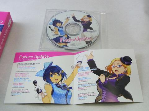 トラックはWindows7時代のオマケCD「七色ジェネレータ」同様2トラックのみで、表題曲のFuture Updateとそのinst版のみ。窓辺ゆう&窓辺あいのCD「Mir8cle Days」の時のようにカップリンング曲はない。…今思えばムリにでもあの時OS買ってゆう&あいのCD入手しておけばよかったなあ。