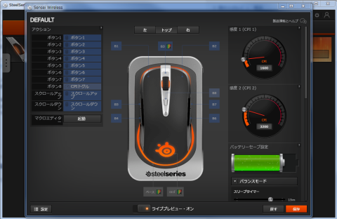 マウス感度の変更やボタン割り当てやバッテリー設定など一通りの設定が揃っている。