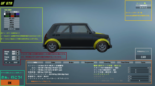 LFSのさらなる強みはセッティング機能が充実していることです。