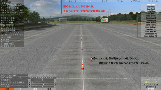 Autocross EditorではTest AreaのAutocrossにあったようなジムカーナコースを自作することができます。