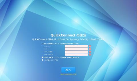 「接続」を押すとDS414jに接続され、次の初期設定画面に遷移します。