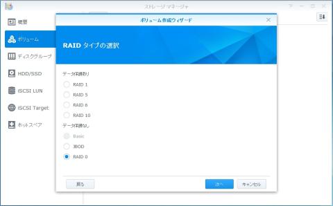RAID5ボリュームを削除してRAID0へ再構成してみます。