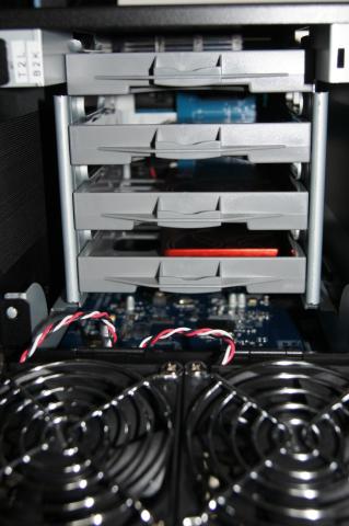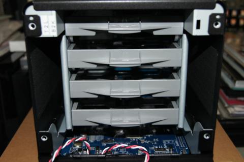 2.5/3.5ドライブを4台内蔵可能。(現状の仕様ではMAX 5TBx4=20TB)