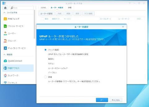 「外部アクセス」→「ルータの設定」からウィザード形式で
