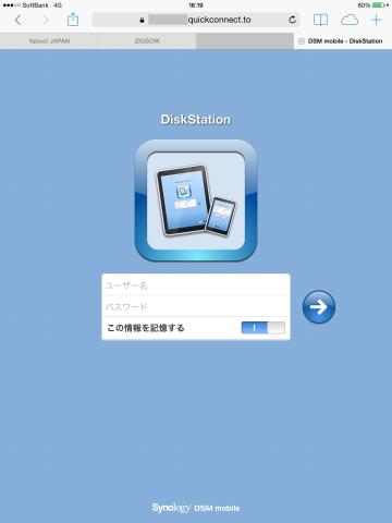 iPadのSafariでQuickConnectID取得時に表示されるアドレスを入力すると