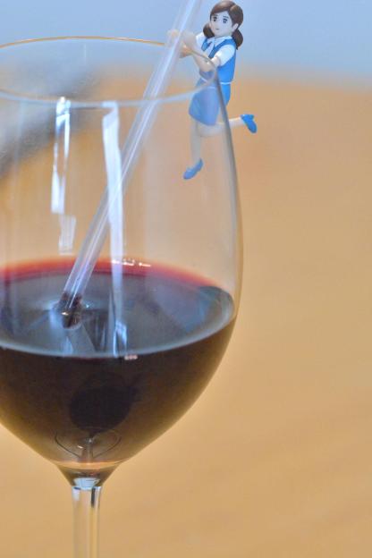 別にコップじゃなくても、ワイングラスでも。(ワインにストローはないだろ!)