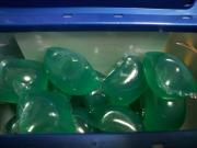 恐らく、この透明なフィルムは水に溶ける素材だと思うのですが、すでに液体が入っているので溶けないのが不思議です。