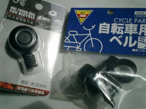 せっかくなので、100円均一で売っている自転車用ベルとホームセンターで売っているベルを