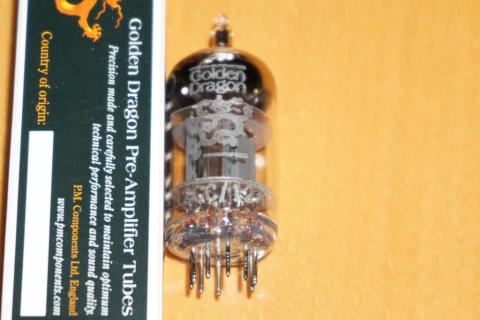 12AX7などとともによく見る球ですが、ビンテージ管だけでなく現在でもいくつかのメーカーで生産されていますし、Golden Dragon のこれは、amazon.co.jpやヨドバシ.comあたりでも普通に購入できます。