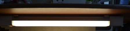 モニタみてる時はいいんですが、他の作業する時にちょっと暗かったので、早速パソコンデスクの下につけてみました。