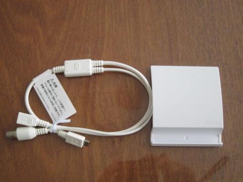 付属品は,アンテナ変換付きUSBケーブルと単なる卓上ホルダーです.