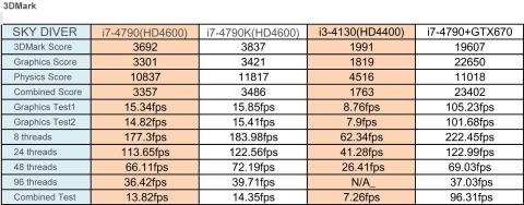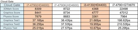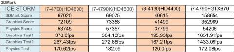 i7-4790 : i7-4790K : i3-4130 : i7-4790+GTX670とのスコアー比較一覧