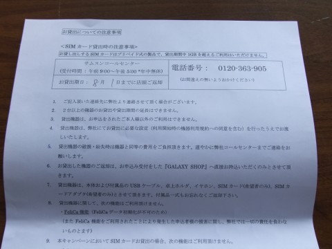 レンタルの申し込みを行ってきました。店頭では新型GALAXY Tabの予約や展示