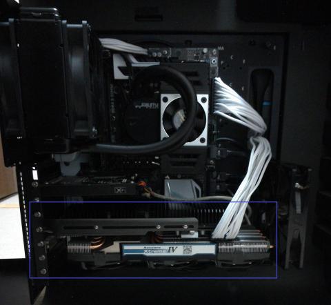 線で囲った部分が、本製品を装着したR9-290Xビデオカード。