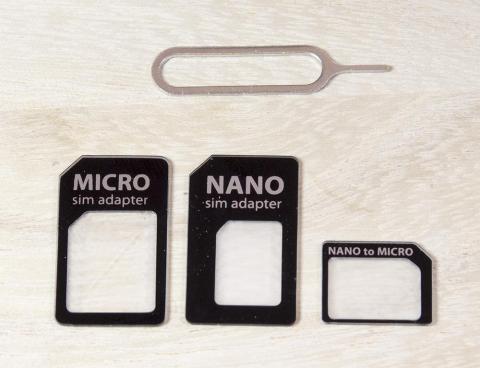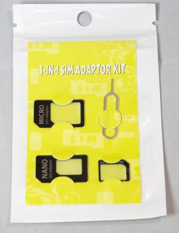 中身は「nanoSIM → 標準SIM」アダプタ、「nanoSIM → microSIM」アダプタ、「microSIM → 標準SIM」アダプタ、謎の金属(たぶん SIMを挿し込む棒)のセットです。