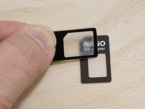 microSIMをアダプタにハメ込もうとすると結構ぎりぎりで、少してこずりました。